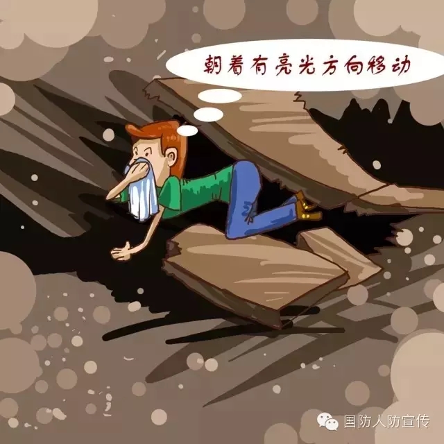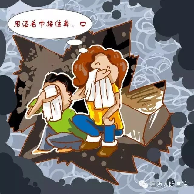 要尽量用湿毛巾、衣物或其他布料捂住口、鼻和头部,防止灰尘呛闷发生窒息,也可以避免建筑物进一步倒塌造成伤害。