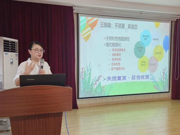 讲座开篇,黄静副教授以"网络成瘾的定义"为核心,系统阐释网络成瘾的医学界定与行为特征,以数据和案例为切入点,解析了青少年沉迷网络的成因。在核心讲解环节,黄教授把重点分享了预防和干预青少年网络沉迷的实用策略。预防层面她建议家长营造温馨的家庭氛围,增加亲子沟通频率,通过培养多元兴趣爱好转移孩子对网络的过度关注;当发现沉迷迹象时,需避免简单粗暴的禁止方式,而是耐心引导孩子共同制定上网规则,明确时长与内容并严格执行,同时家长应以身作则减少电子设备使用时间。