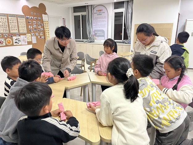 最后“折叠红船、薪火相传”环节开启。老师耐心示范步骤,手把手指导孩子们制作小红船。鲜艳红纸在孩子们手中翻飞、对折、按压,大家神情专注。过程中,老师帮助了有困难的孩子调整折痕,完成快的孩子主动分享技巧,现场氛围温馨。一番努力后,一艘艘小巧的小红船成形。此次手工活动既锻炼孩子手眼协调能力,更让红色火种以实物形式伴随成长,寓意红船精神代代相传。