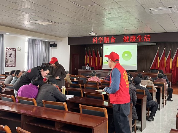 活动现场,卫生院医护人员结合《中国居民膳食指南》,用通俗直白的语言,向居民讲解膳食搭配核心要点,重点普及“食物多样、谷类为主”“少盐少油少糖”等健康知识,拆解日常饮食中“不吃主食能减肥”“汤比肉更有营养”等常见误区,尤其针对老年人、慢性病患者等群体,细致讲解适配的膳食技巧和营养补充方法,让居民轻松掌握实用的饮食知识。讲解结束后,工作人员向现场居民发放了“科学膳食 健康生活”健康知识小卡片。卡片内容简洁实用,清晰标注了每日各类食材推荐摄入量、荤素搭配技巧及慢性病膳食注意事项,方便居民随身携带、随时查阅,真正实现“把健康知识装进口袋”。
