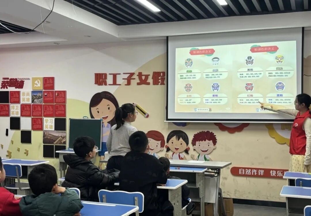 活动开始,社工老师和孩子们先一起认识脸谱的色彩密码:红色代表忠义,黑色象征刚直,白色寓意奸诈……每一种颜色都藏着人物的性格特点,让孩子们一眼读懂角色。